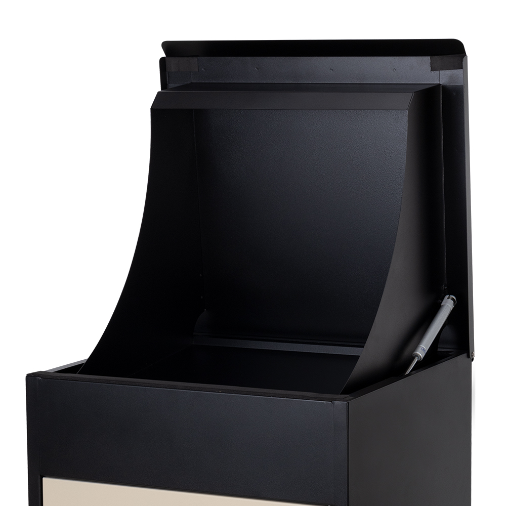 | Recurso | Esta caixa de encomendas de grande capacidade foi projetada com um slot de entrega de abertura superior e uma porta de acesso frontal, permitindo que os entregadores depositem os pacotes pela parte superior e, ao mesmo tempo, permitindo que os usuários recuperem as entregas facilmente pela frente. |