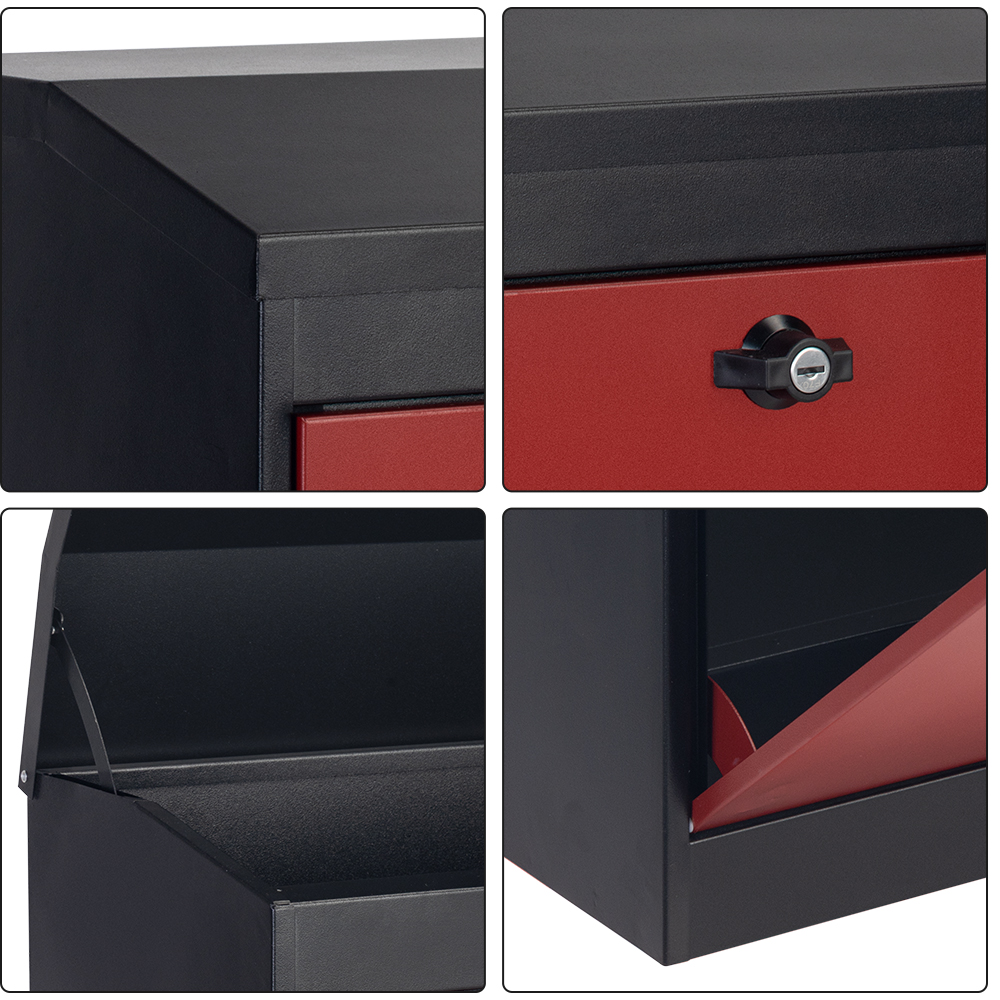 · Construída com aço galvanizado e acabamento com revestimento em pó, esta caixa de correio de aço personalizada durável garante proteção duradoura contra roubo e intempéries, otimizando a eficiência do manuseio de pacotes.